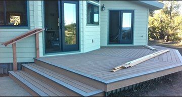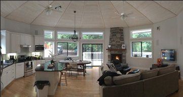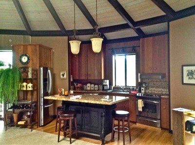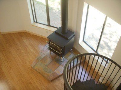 Nomad 4 - 825 Sq.Ft. 2 bedroom ,great room with full kitchen and full bath and clerestory windows in great room. Installed on your lot. Deck shield steel panels, Tempered window, vent less insulated eaves, baffle foundation vents prevent wild fires from entering under or through your home. Our Cluster Custom Homes vary in size. This one below was recently completed in Navarro California and is 1,265 square ft. and was built with many custom features, heated bathroom floors, gas fireplace, large wrap around decks, clearstory high ceilings, granite counter tops, bamboo and tile floors.
