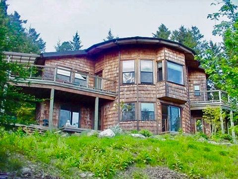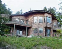 Below recycled wine tank/shake siding from Stump bases. Local Sod Farms provide the green roof. Sierra Pine from sustainable forests and local Earth Plaster.