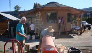 We have incorporated earth lime and straw and clay based finishes in some of our greener yurts. Vital Systems; a leading natural building company shares our factory property batches at our factory. We share our yard space in Ukiah. They apply with a plaster spray machine and by hand applied over the lath plaster mesh in layers.