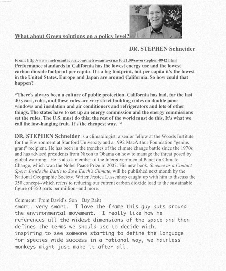 STEPHEN Schneider is a climatologist, a senior fellow at the Woods Institute for the Environment at Stanford University and a 1992 MacArthur Foundation “genius grant” recipient. He has been in the trenches of the climate change battle since the 1970s and has advised presidents from Nixon to Obama on how to manage the threat posed by global warming. He is also a member of the Intergovernmental Panel on Climate Change, which won the Nobel Peace Prize in 2007. His new book, Science as a Contact Sport: Inside the Battle to Save Earth’s Children, will be published next month by the National Geographic Society. Writer Jessica Lussenhop caught up with him to discuss the 350 concept – which refers to reducing our current carbon dioxide load to the sustainable figure of 350 parts per million—and more.