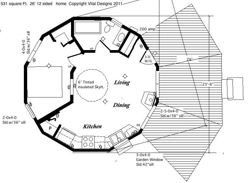 California Round House will provide the Phoenix California Round House which is a custom 26’ 12 sided high wall round house floor plan engineered fire rated class A roof and hardi lap siding fire, earthquake, energy compliant home with plans.